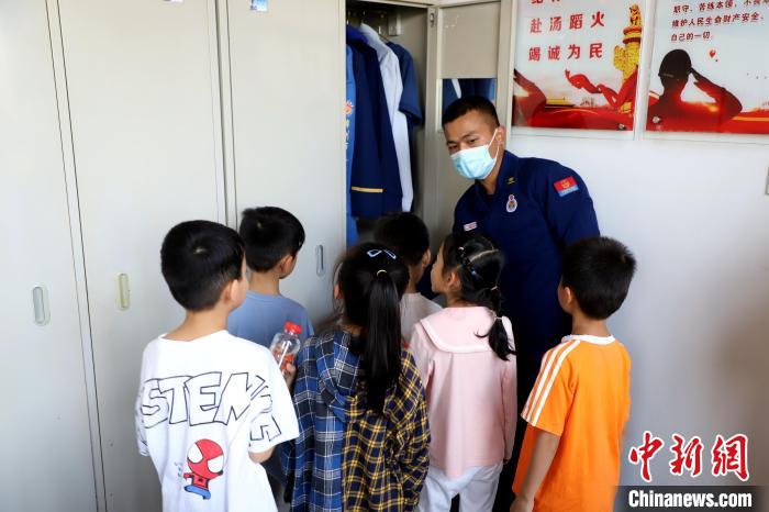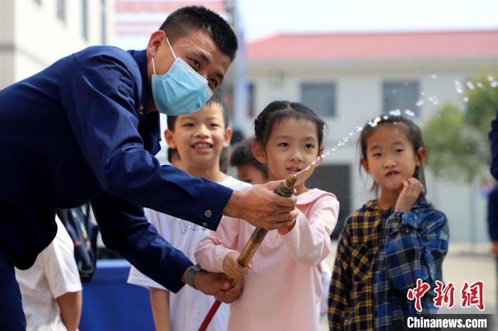 小朋友們親身體驗(yàn)滅火裝備器材。 蔡增欣 攝