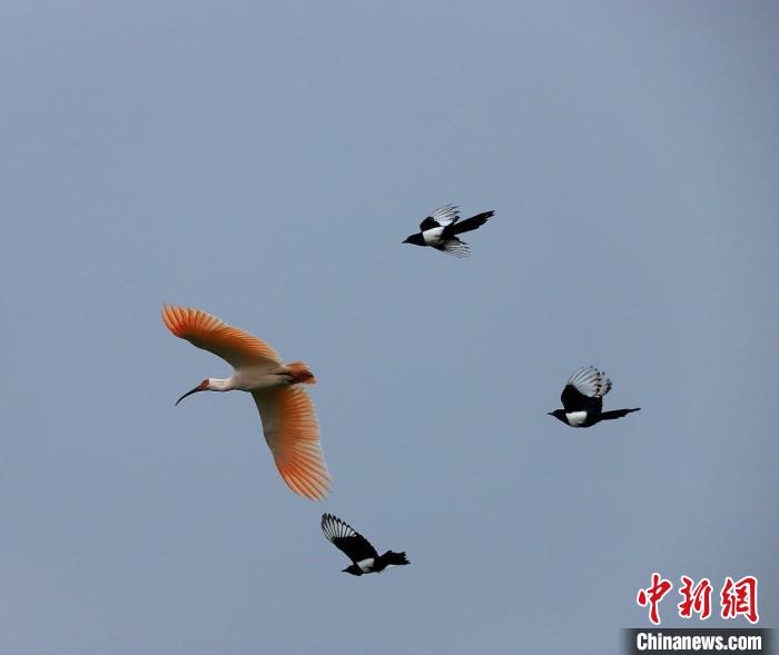 朱鹮和喜鵲打架其實(shí)是一種爭(zhēng)奪領(lǐng)域的行為,在自然界是很普遍也很正常的。朱鹮在野生環(huán)境中,不光要對(duì)付老鷹、蛇類等天敵,還要學(xué)會(huì)與競(jìng)爭(zhēng)對(duì)手烏鴉、喜鵲等“打交道”,趨利避害,不斷增強(qiáng)自然生存本領(lǐng)。