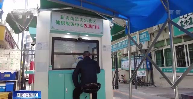 廣東深圳寶安區(qū)新安街道安樂社區(qū)健康服務中心門口,醫(yī)生在為居民診療。停用的核酸采樣艙經(jīng)過改造后,已變身為發(fā)熱門診。發(fā)熱門診內(nèi)配有電腦、醫(yī)保刷卡機、制氧機、必備藥品等,全科醫(yī)生輪流坐診,患者來到這里后,從接受診療、開方、繳費、配藥全過程最快5分鐘就可完成。