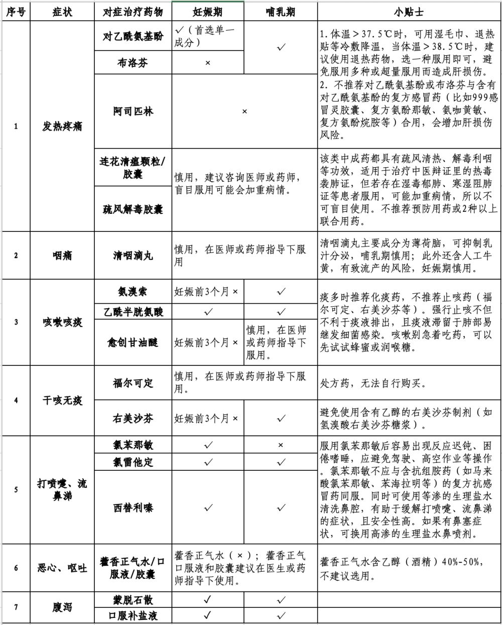 具體有哪些常備藥物適合孕期的“準(zhǔn)媽媽”和哺乳期媽媽應(yīng)對新冠呢?請參考陸軍軍醫(yī)大學(xué)陸軍特色醫(yī)學(xué)中心藥劑科整理的用藥指南。