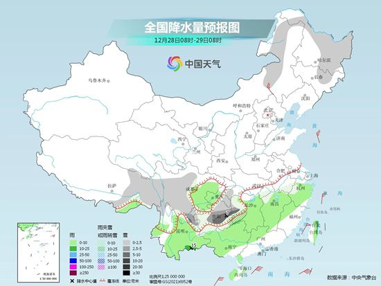 中國天氣網(wǎng)訊 在冷空氣與西南暖濕氣流配合之下,今天(12月28日),南方各地降水繼續(xù)發(fā)展。預計,湖南、貴州、云南等地局地有中雪或大雪,降溫重心也集中到了長江以南地區(qū),各地濕冷加重,上述地區(qū)公眾需做好防范雨雪和防寒保暖工作。