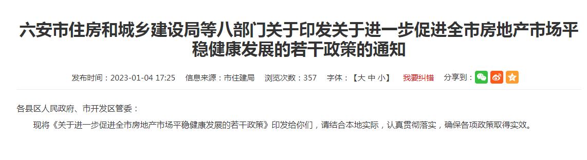安徽省六安市住房和城鄉(xiāng)建設局網站信息截圖。