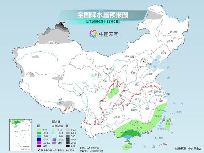 降水方面,今天,我國(guó)降水區(qū)域仍集中在一南一北:新疆北部及華南地區(qū),新疆多地有強(qiáng)降雪現(xiàn)身,廣東、廣西的部分地區(qū)或有大雨。具體來(lái)看,今天,內(nèi)蒙古東北部、新疆北部和西部山區(qū)等地部分地區(qū)有小到中雪,其中,新疆北疆北部等地部分地區(qū)有大到暴雪(10~19毫米)。江南東南部、華南大部、臺(tái)灣島等地部分地區(qū)有小到中雨,其中,廣西東南部沿海、廣東西南部等地部分地區(qū)有大雨。