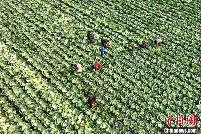 資料圖:村民在收獲甘藍(lán)菜。(無(wú)人機(jī)照片) 郜玉華 攝