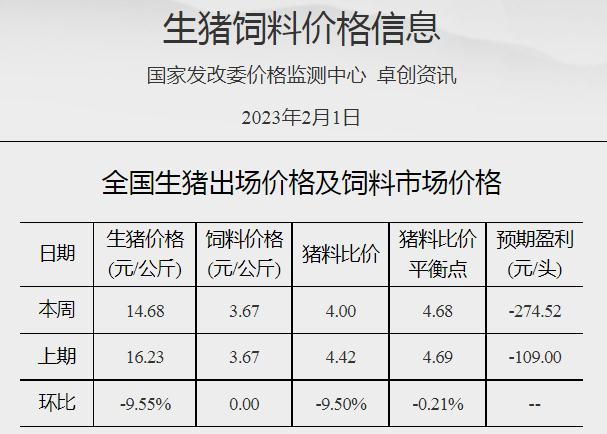 中新網(wǎng)2月6日電 據(jù)國家發(fā)改委價格監(jiān)測中心網(wǎng)站消息,截至2023年2月1日當(dāng)周,全國豬料比價為4.00,較春節(jié)前(1月18日)下降9.50%。按目前價格及成本推算,未來生豬養(yǎng)殖頭均虧損為274.52元。當(dāng)周國內(nèi)豬價以降為主。隨著春節(jié)假期收尾,終端消費漸顯疲軟,屠宰企業(yè)開工率低位調(diào)整,整體收購難度不大,壓價情緒較濃,而養(yǎng)殖端雖有抗價情緒,但生豬出欄壓力仍存,周內(nèi)豬價小幅走低。