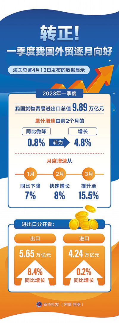 -7%、8%、15.5%,一季度3個(gè)月份,中國(guó)外貿(mào)跑出了進(jìn)出口增速的向上曲線(xiàn),也跑出了復(fù)雜背景下全年保穩(wěn)提質(zhì)的篤定和信心。