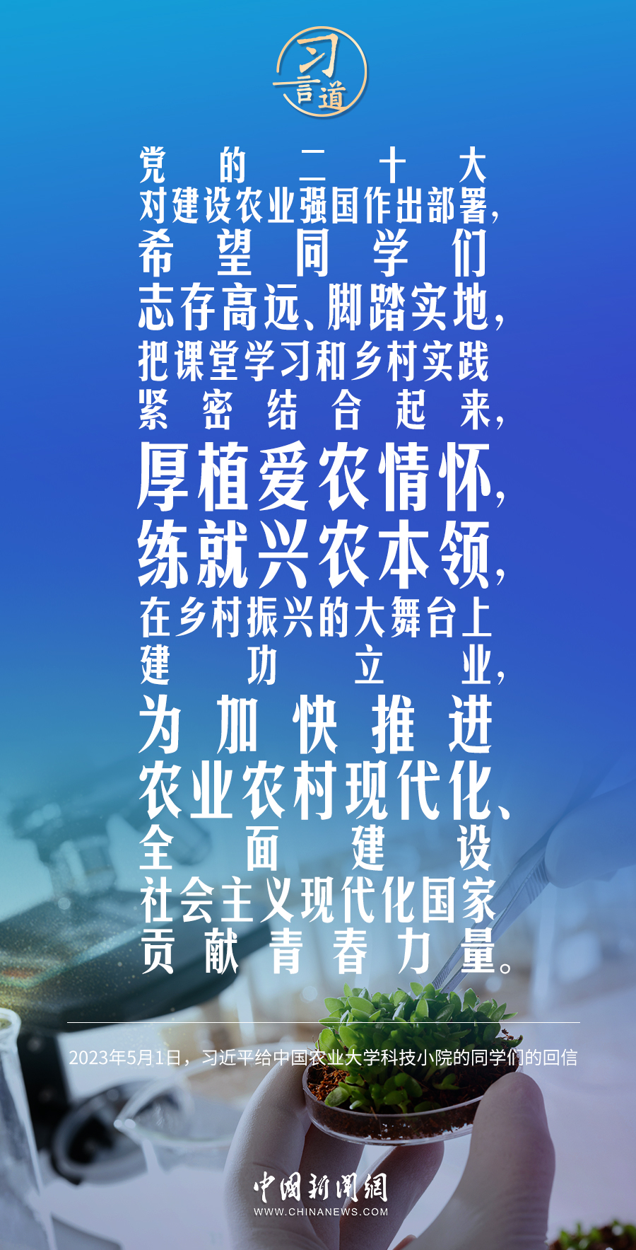 5月1日,中共中央總書(shū)記、國(guó)家主席、中央軍委主席習(xí)近平在給中國(guó)農(nóng)業(yè)大學(xué)科技小院同學(xué)們的回信中指出——