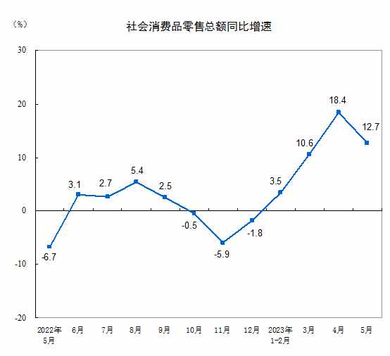 國(guó)家統(tǒng)計(jì)局:2023年5月份社會(huì)消費(fèi)品零售總額增長(zhǎng)12.7%