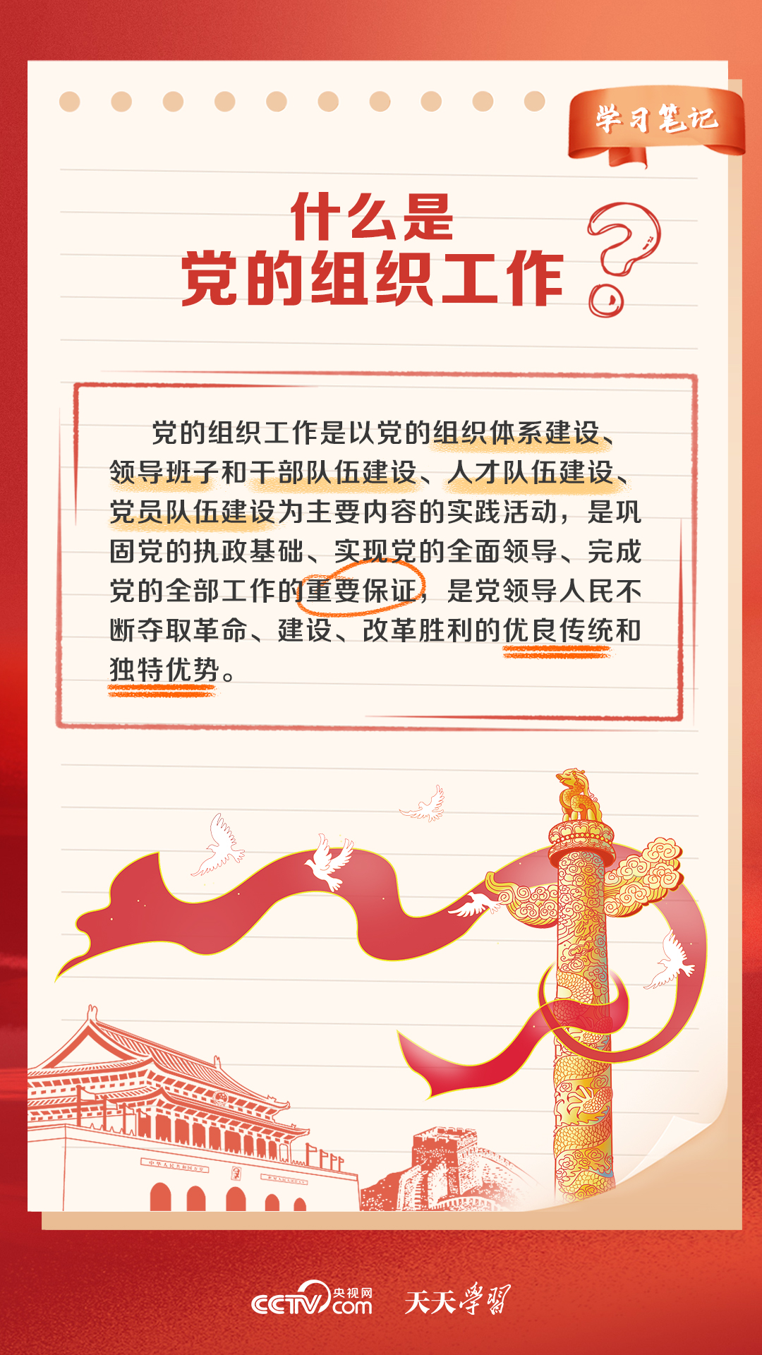 黨的力量來(lái)自組織,組織嚴(yán)密是黨的光榮傳統(tǒng)和獨(dú)特優(yōu)勢(shì),正如習(xí)近平總書(shū)記所說(shuō),黨的全面領(lǐng)導(dǎo)、黨的全部工作要靠黨的堅(jiān)強(qiáng)組織體系去實(shí)現(xiàn)。什么是黨的組織工作?全國(guó)組織工作會(huì)議是個(gè)怎樣的會(huì)議?央視網(wǎng)《天天學(xué)習(xí)》帶您了解。