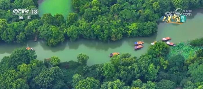 這里是杭州西溪國(guó)家濕地公園。盛夏時(shí)節(jié),杭州西溪濕地草木蔥蘢、綠樹(shù)成蔭,鷺舞燕翔、荷香魚(yú)躍,星羅棋布的魚(yú)塘呈現(xiàn)出“萬(wàn)塘攬勝”的美景。這里生態(tài)資源豐富,有維管束植物739種、鳥(niǎo)類203種、昆蟲(chóng)911種、魚(yú)類56種。二十年來(lái),杭州西溪濕地以保護(hù)原生態(tài)為目標(biāo),統(tǒng)籌生產(chǎn)、生活、生態(tài)三大空間布局,探索了一條濕地保護(hù)與利用雙贏的道路。