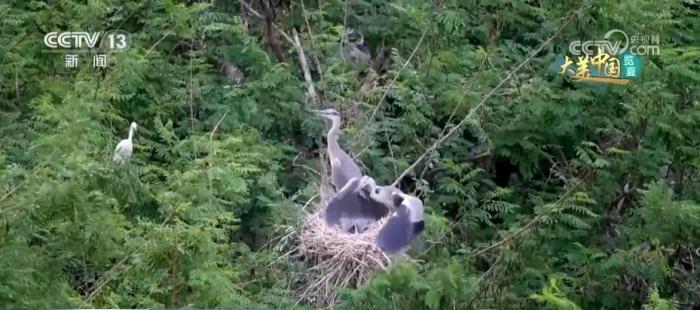 近段時(shí)間,河北省秦皇島市的桃林口水庫(kù)的庫(kù)區(qū)內(nèi)碧水盈盈,河畔的林木葳蕤(wēi ruí),郁郁蔥蔥,一派自然和諧的美景。從高處俯瞰,蒼翠之間可以看到星星點(diǎn)點(diǎn)的白色,那便是國(guó)家二級(jí)保護(hù)動(dòng)物蒼鷺。蒼鷺或三兩為伴嬉戲玩耍,或獨(dú)自佇立枝頭眺望遠(yuǎn)方。水面上,還有蒼鷺展翅滑翔覓食育雛,數(shù)量多時(shí),這里的蒼鷺可達(dá)上千只。除了蒼鷺外,還有黑鸛、鸕鶿、白鷺等各種鳥(niǎo)兒在此棲息安家。
