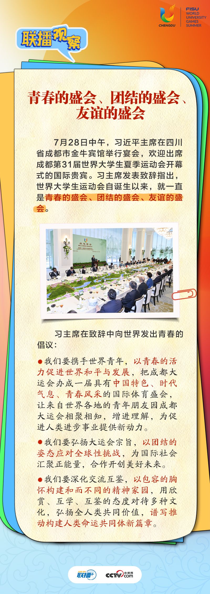 大運會時間,我國重要的主場外交也同步拉開帷幕,習近平主席的日程格外繁忙。央視網《聯(lián)播+》帶您沉浸式感受這場青春盛會為世界送出的別具匠心的“四川禮物”。