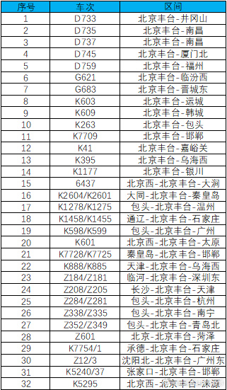 受降雨影響,8月2日北京西站、北京豐臺站部分列車停運(yùn)