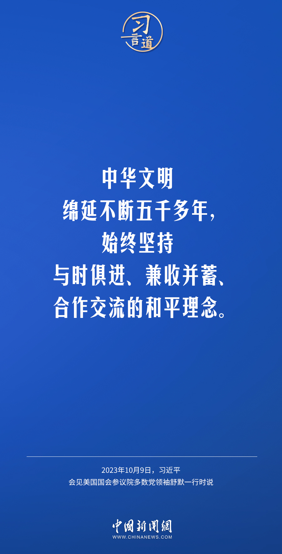 10月9日下午,國家主席習(xí)近平在人民大會堂會見美國國會參議院多數(shù)黨領(lǐng)袖舒默率領(lǐng)的美國國會參議院兩黨代表團(tuán)。習(xí)近平指出——