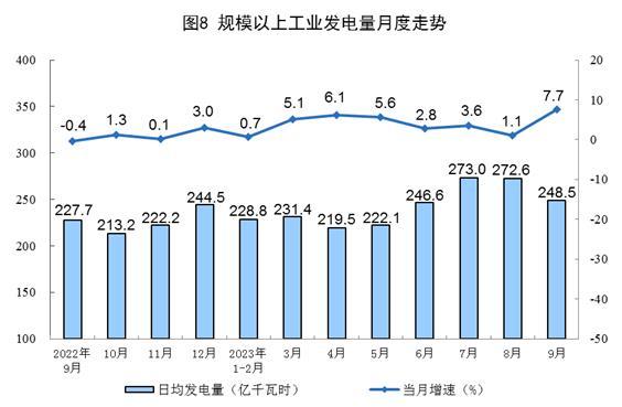 國家統(tǒng)計局:9月份發(fā)電量7456億千瓦時 同比增長7.7%