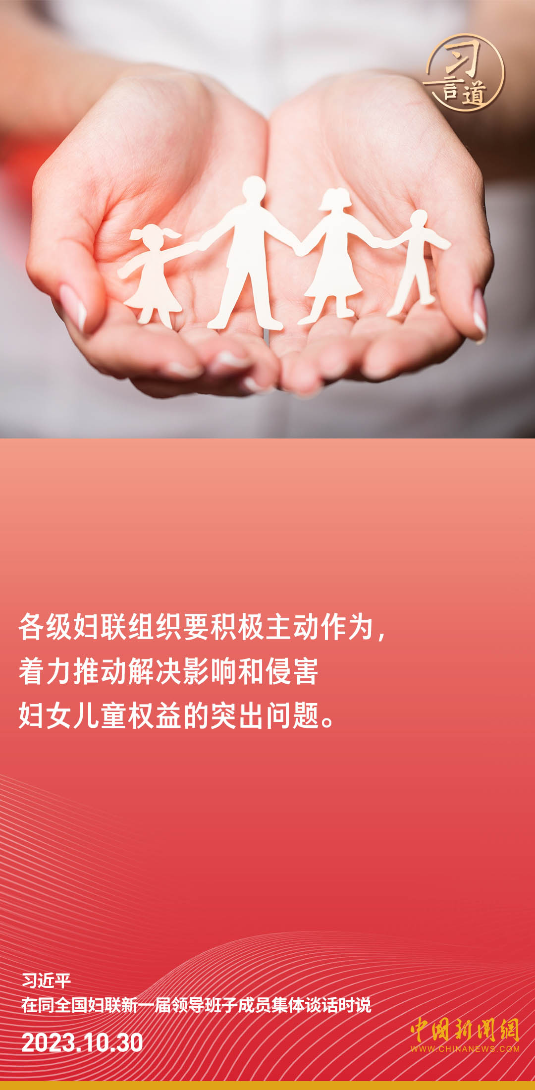 中共中央總書記、國家主席、中央軍委主席習近平30日下午在中南海同全國婦聯新一屆領導班子成員集體談話并發(fā)表重要講話。習近平強調——