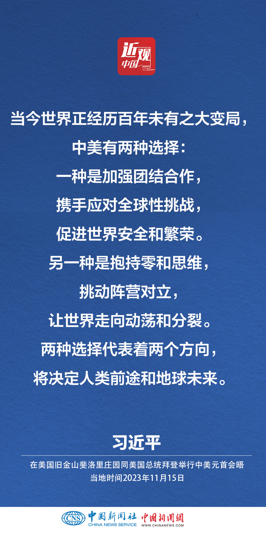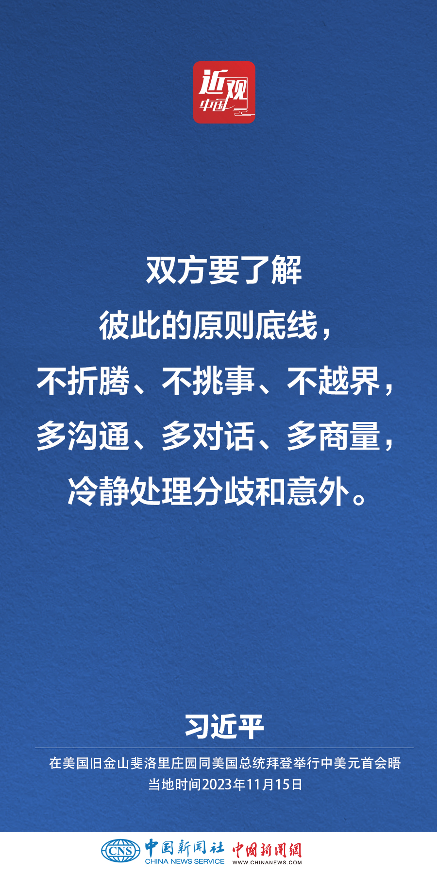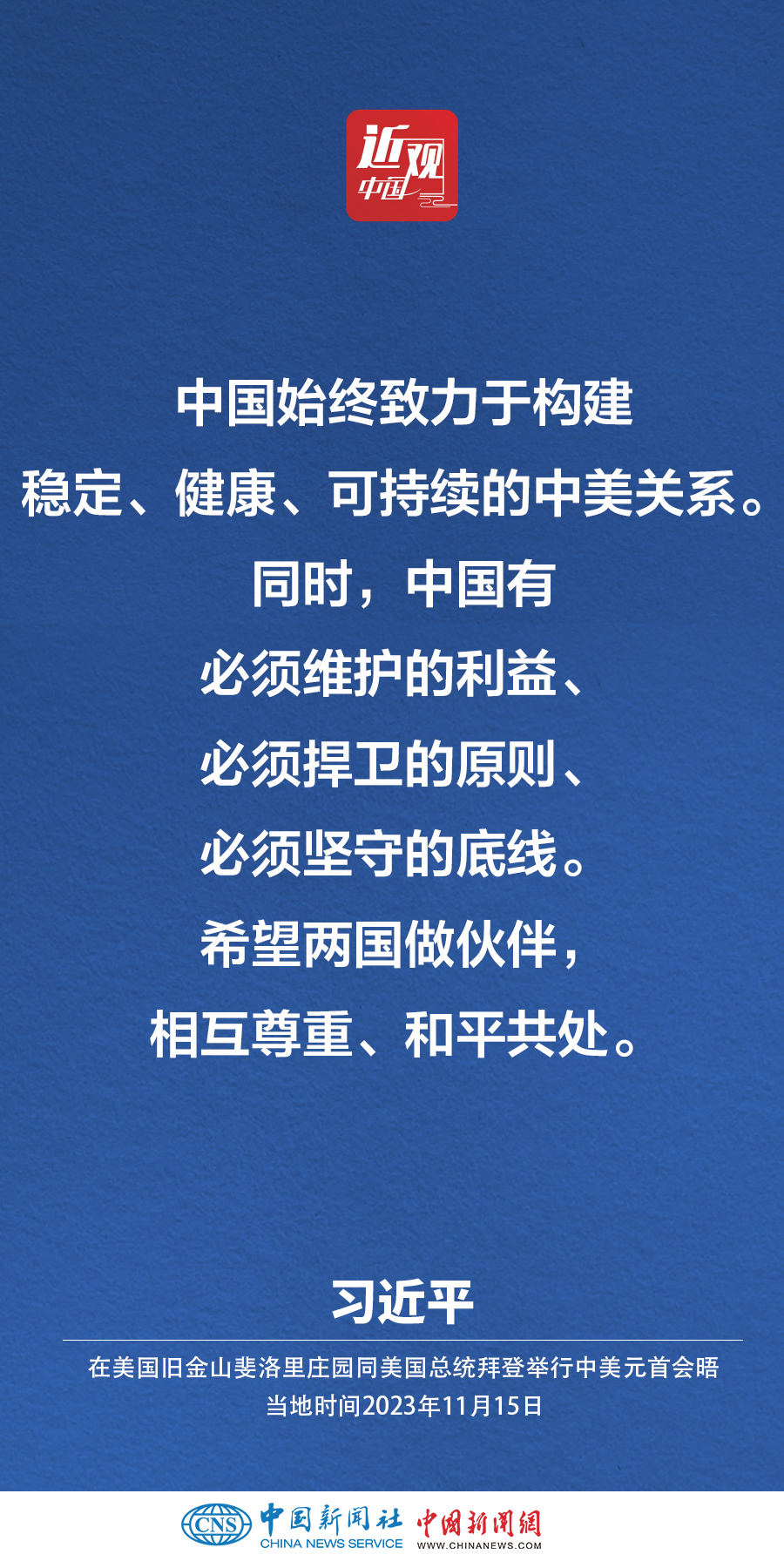 當(dāng)?shù)貢r間11月15日,中國國家主席習(xí)近平在美國舊金山斐洛里莊園同美國總統(tǒng)拜登舉行中美元首會晤。習(xí)近平指出——