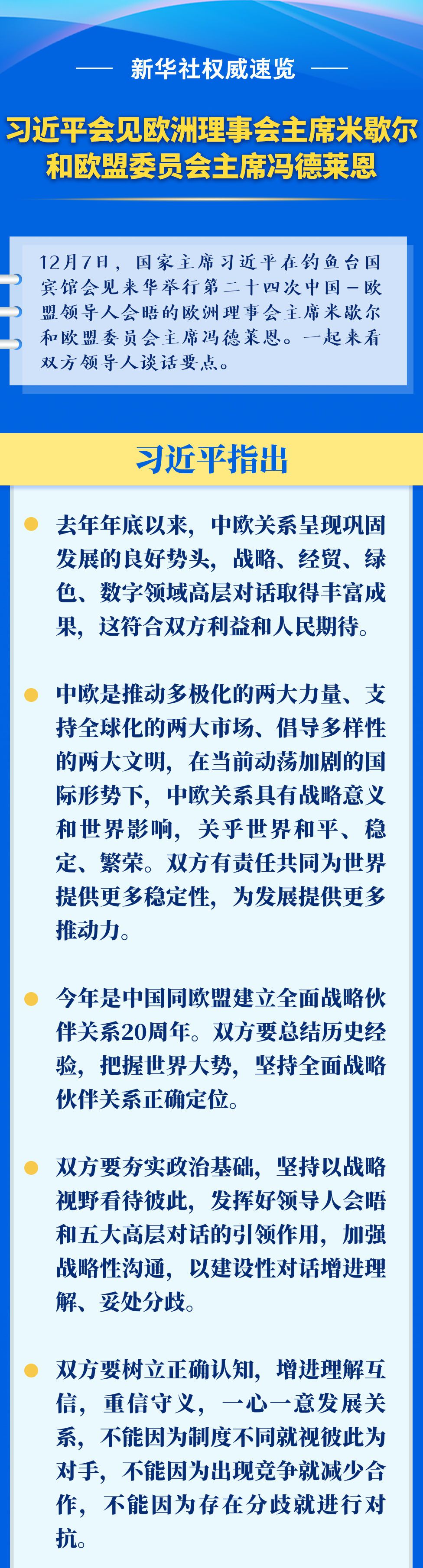 新華社權(quán)威速覽|習(xí)近平會(huì)見(jiàn)歐洲理事會(huì)主席米歇爾和歐盟委員會(huì)主席馮德萊恩