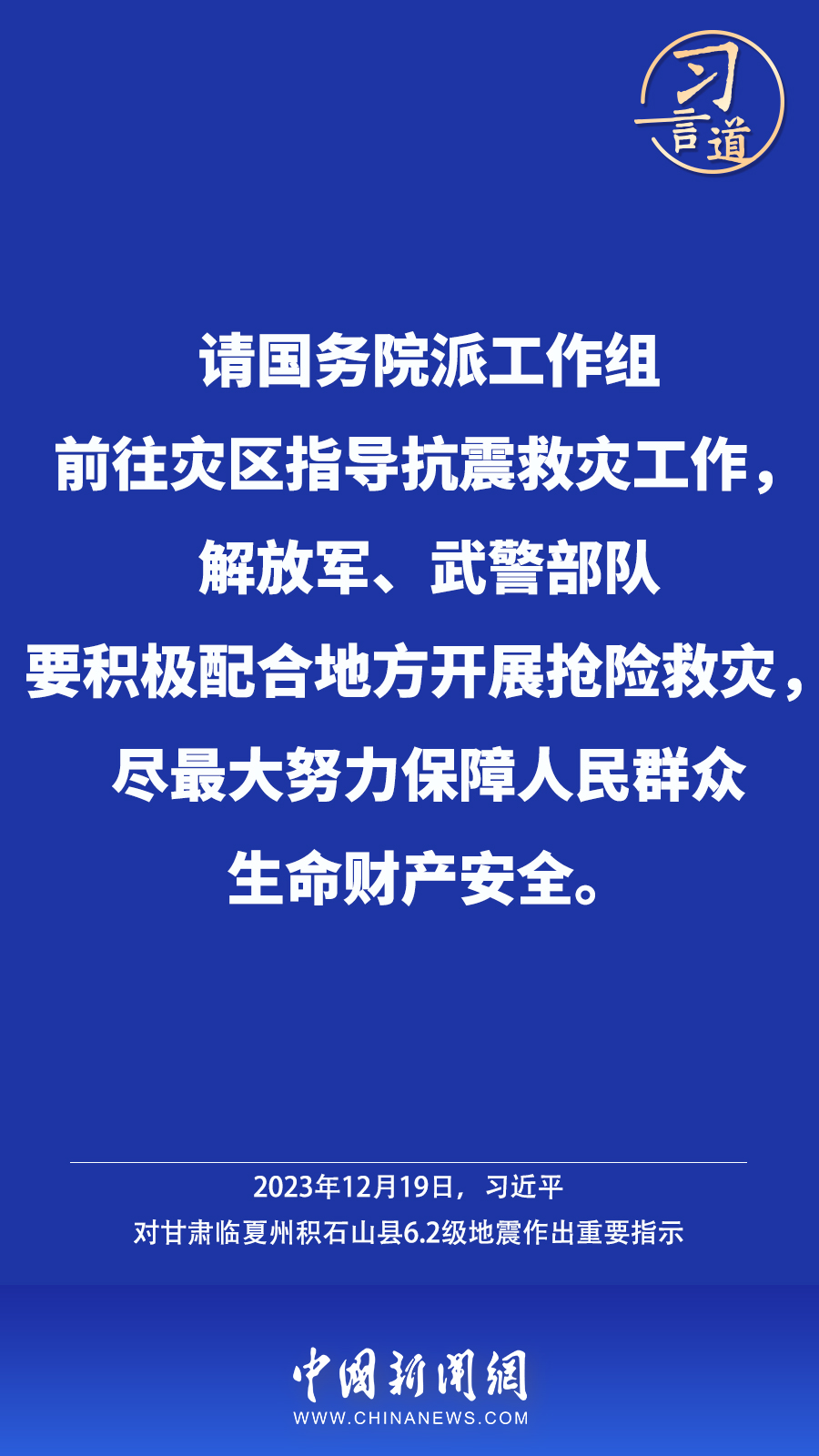 北京時間12月18日23時59分,甘肅臨夏州積石山縣發(fā)生6.2級地震,震源深度10公里。地震發(fā)生后,中共中央總書記、國家主席、中央軍委主席習(xí)近平高度重視并作出重要指示——