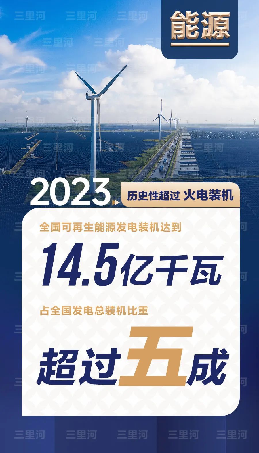 2023年,全國(guó)可再生能源發(fā)電裝機(jī)達(dá)到14.5億千瓦,占全國(guó)發(fā)電總裝機(jī)比重超過(guò)五成,歷史性超過(guò)火電裝機(jī)。