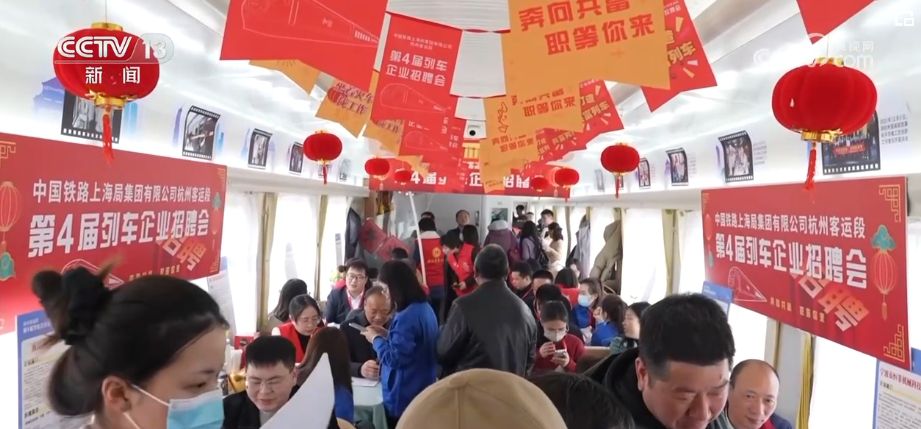 2月26日,在廣州白云開往寧波的K210次列車上,一場流動招聘會正在舉行。餐車里,十幾張火車餐臺變成了招聘臺,來自浙江杭州、寧波、湖州等地的企業(yè)招聘人員正在分發(fā)招聘宣傳單。前來咨詢招工信息的旅客圍聚在桌前,還有人現(xiàn)場填起了表格。