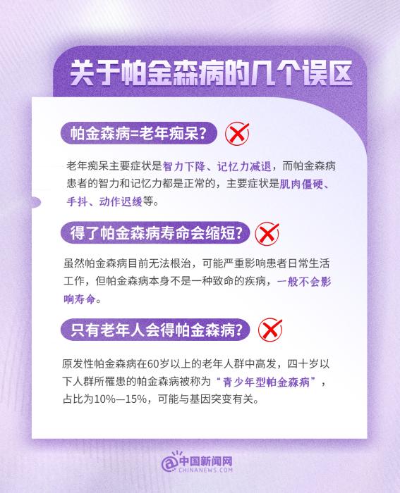 中新網(wǎng)4月11日電 帕金森病是威脅老年人健康的“沉默殺手”。帕金森病=老年癡呆?得了帕金森病壽命會縮短?只有老年人會得帕金森???今天是世界帕金森病日,這些有關帕金森病的小知識,一起了解!