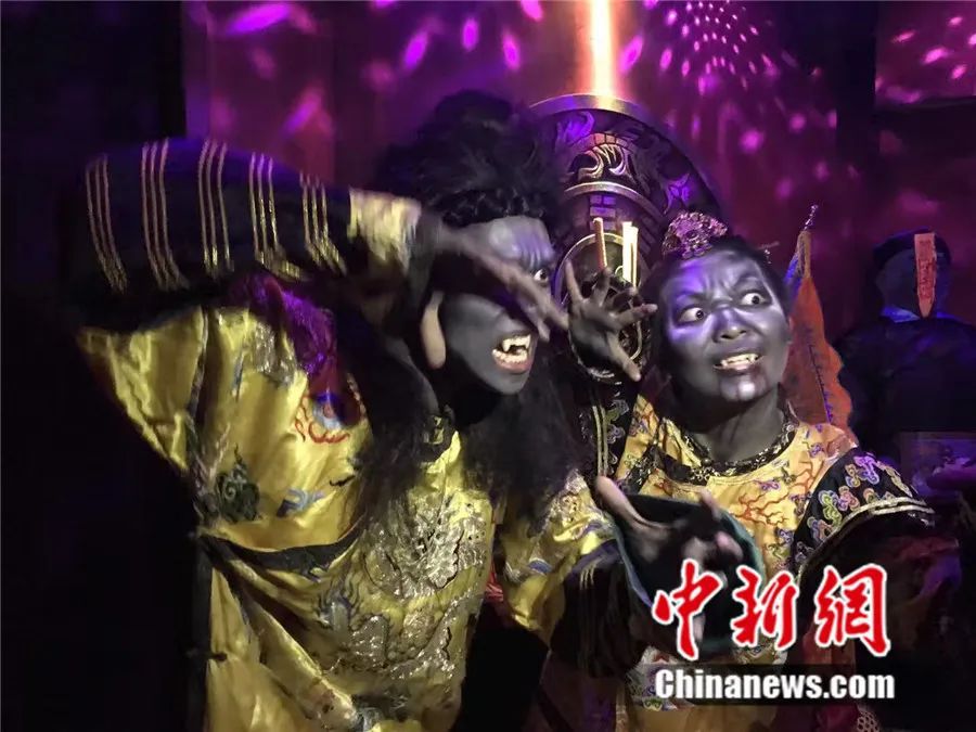 香港海洋公園萬圣節(jié)“哈啰喂”節(jié)目中的演員。中新社記者 曾平 攝