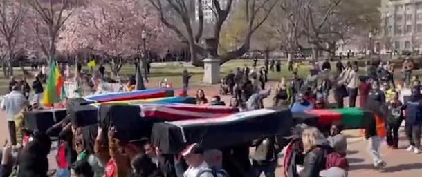 美反戰(zhàn)人士白宮外“抬棺抗議”:對(duì)美國(guó)無(wú)休止戰(zhàn)爭(zhēng)說(shuō)不!