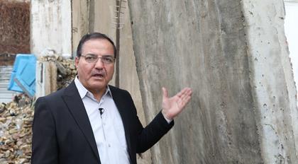 2023年3月15日,在伊拉克首都巴格達,巴格達分社的伊拉克籍雇員賈邁勒站在防爆墻前。新華社發(fā)(董亞雷攝)