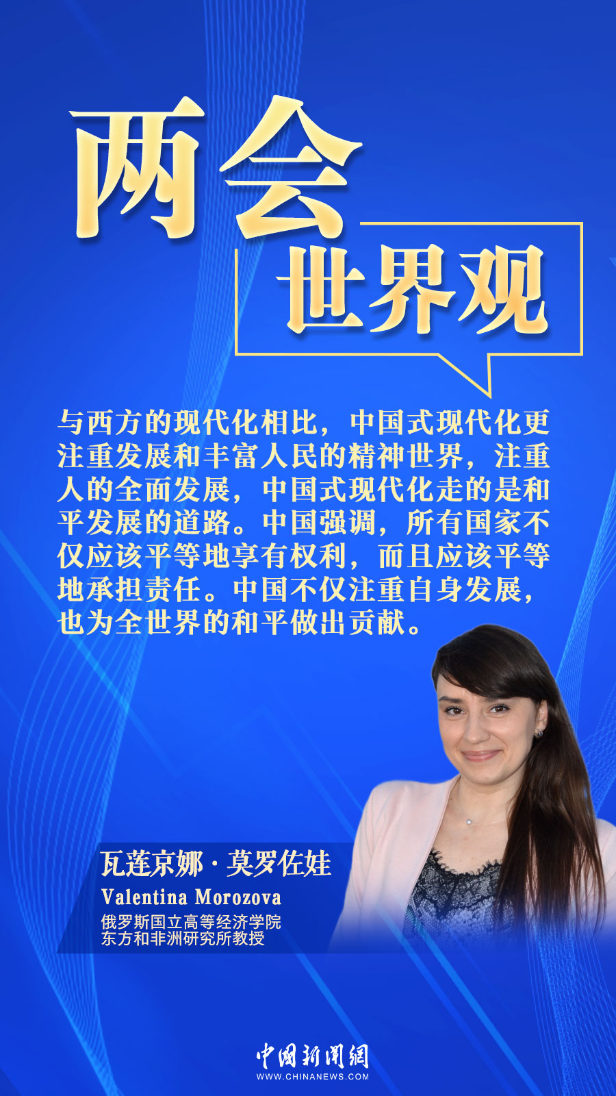 中新網3月16日電(張乃月)近日,俄羅斯國立高等經濟學院東方和非洲研究所教授莫羅佐娃接受中新網采訪時,肯定了中國建設性地參與全球治理的態(tài)度,關注中國以自身高質量發(fā)展和經濟、科技、文化實力,為加強世界各國人民、各國間的聯系做出貢獻。