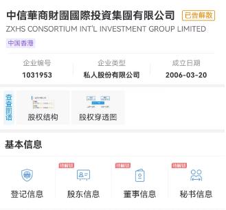中新財(cái)經(jīng)還以“華商財(cái)團(tuán)”為關(guān)鍵詞通過(guò)企查查APP進(jìn)行搜索,出現(xiàn)“中匯華商財(cái)團(tuán)投資管理(北京)有限公司”、“中信華商財(cái)團(tuán)國(guó)際投資集團(tuán)有限公司”兩項(xiàng)最為相關(guān)的結(jié)果。前者為注冊(cè)資本1000萬(wàn)元人民幣的小微企業(yè),后者則被標(biāo)注“已告解散”。
