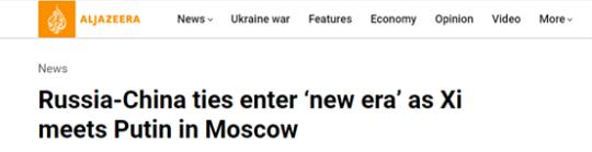 卡塔爾半島電視臺網(wǎng)站21日報道稱,中俄元首簽署聯(lián)合聲明,將深化新時代中俄關系,俄中合作具有無限可能和廣闊前景。