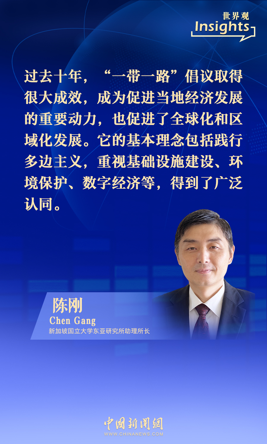 陳剛舉例說,過去十年,“一帶一路”倡議取得很大成效,成為沿線國(guó)家經(jīng)濟(jì)發(fā)展的重要?jiǎng)恿?,也促進(jìn)了全球化和區(qū)域化發(fā)展。它的基本理念包括踐行多邊主義,重視基礎(chǔ)設(shè)施建設(shè)、環(huán)境保護(hù)、數(shù)字經(jīng)濟(jì)等。這一倡議,在世界范圍內(nèi)得到了廣泛認(rèn)同。