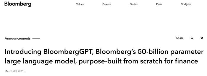 彭博是一家全球商業(yè)、金融信息和新聞資訊提供商。3月30日,該公司發(fā)布了一篇關(guān)于BloombergGPT開發(fā)情況的研究論文,詳細(xì)介紹了這一大規(guī)模生成式人工智能(AI)模型。該大語言模型(LLM)專門針對各類金融數(shù)據(jù)進(jìn)行訓(xùn)練,以全方位支持金融領(lǐng)域的自然語言處理(NLP)任務(wù)。