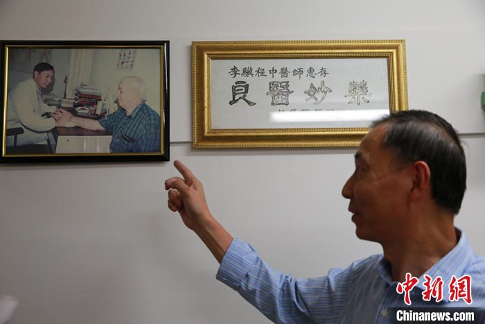 診所墻上一張彩色相片引起筆者好奇心。照片里,李醫(yī)生在給一個(gè)頭發(fā)花白的外國人號(hào)脈診斷。