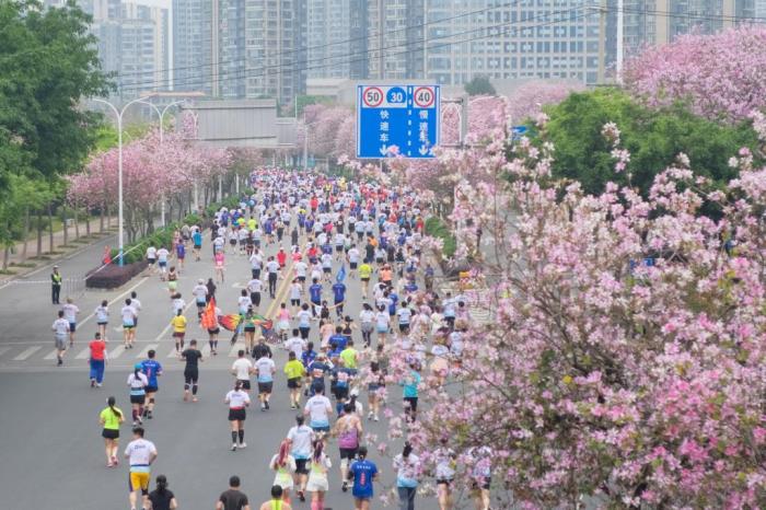 趁著柳州最美時節(jié),2023柳州馬拉松暨警察馬拉松4月9日開跑。該市獨特的洋紫荊盛開路段串聯(lián)成馬拉松賽道,參賽選手們一邊盡情奔跑,一邊領(lǐng)略城市獨特風景。該次比賽吸引中國各地2萬人匯聚柳州,亦促進當?shù)亟?jīng)濟發(fā)展。