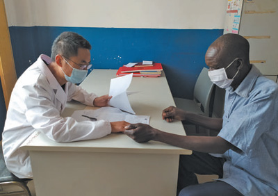 中國醫(yī)療隊(duì)醫(yī)生在中烏友好醫(yī)院出診。