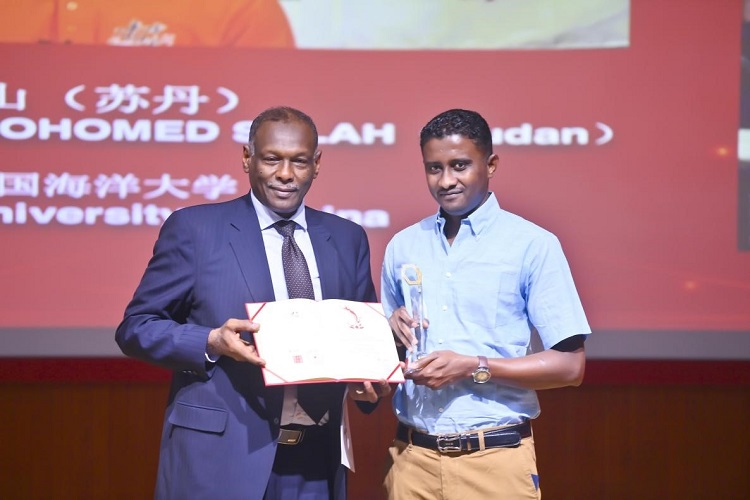 蘇丹駐華大使奧馬爾·薩迪格為獲獎作品導(dǎo)演霍山頒獎。北京師范大學(xué)提供圖片