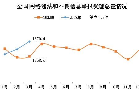 中新網(wǎng)4月11日電 據(jù)中央網(wǎng)信辦舉報中心微信公眾號消息,2023年3月,中央網(wǎng)信辦舉報中心指導全國各級網(wǎng)信舉報工作部門、主要網(wǎng)站平臺受理網(wǎng)民舉報色情、賭博、侵權(quán)、謠言等違法和不良信息1670.4萬件,環(huán)比增長14.4%、同比增長32.7%。其中,中央網(wǎng)信辦舉報中心受理舉報44.3萬件,環(huán)比下降22.9%、同比增長19.1%;各地網(wǎng)信舉報工作部門受理舉報74.0萬件,環(huán)比增長18.3%、同比下降12.3%;全國主要網(wǎng)站平臺受理舉報1552.2萬件,環(huán)比增長15.8%、同比增長36.5%。