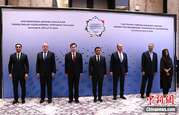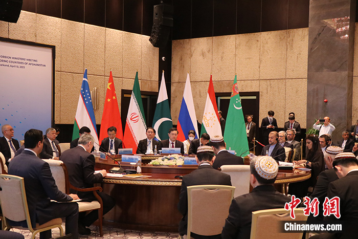 當(dāng)?shù)貢r(shí)間4月13日,烏茲別克斯坦撒馬爾罕,第四次阿富汗鄰國(guó)外長(zhǎng)會(huì)舉行。 中新社記者 張碩 攝