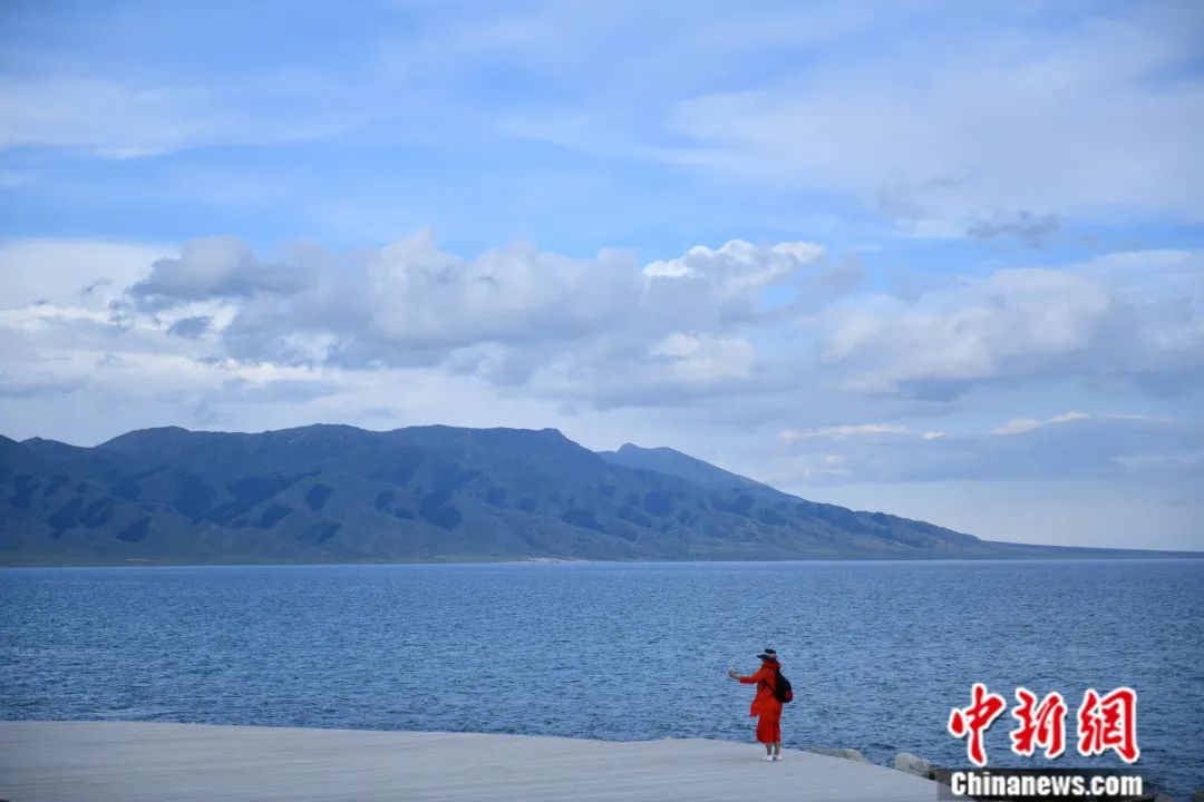 位于天山山脈的新疆賽里木湖景區(qū)內(nèi),湛藍的湖水與天一色,同遠處山峰相映成畫。張興龍 攝