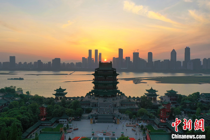 圖為2021年5月2日, 位于江西南昌贛江之畔的江南名樓滕王閣迎來(lái)眾多游客。(無(wú)人機(jī)照片) 中新社記者 劉占昆 攝