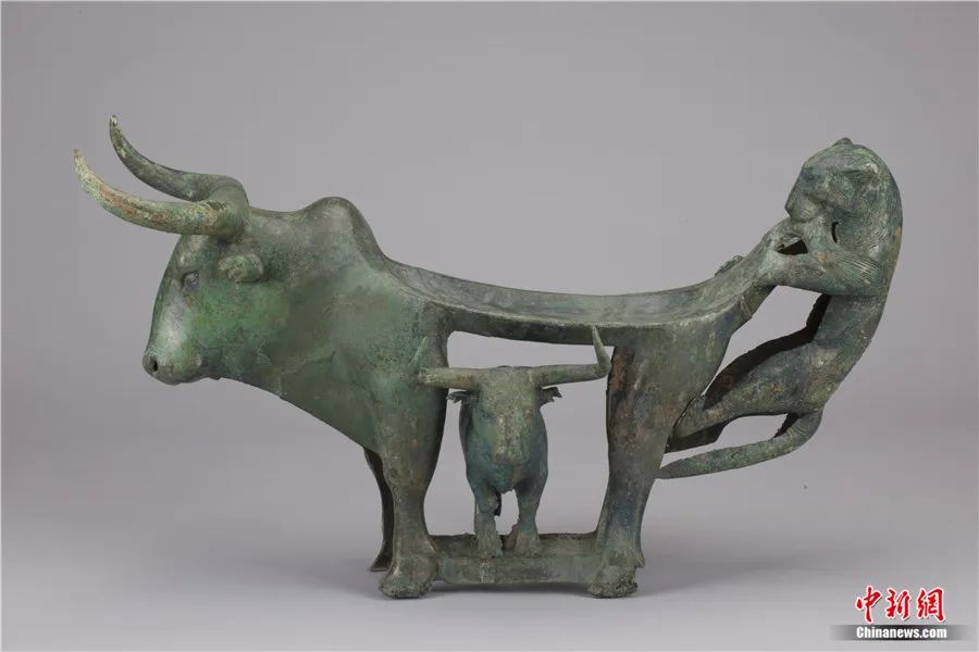此外,還有專家延伸解讀:在古滇國,虎為百獸之王,象征權(quán)威,牛則是財(cái)富和生命的標(biāo)志。?;~案中的虎、牛形象成為滇人重點(diǎn)表達(dá)的主題,顯示了滇人崇虎、崇牛之情,表達(dá)了對(duì)權(quán)力、財(cái)富和生命的向往。