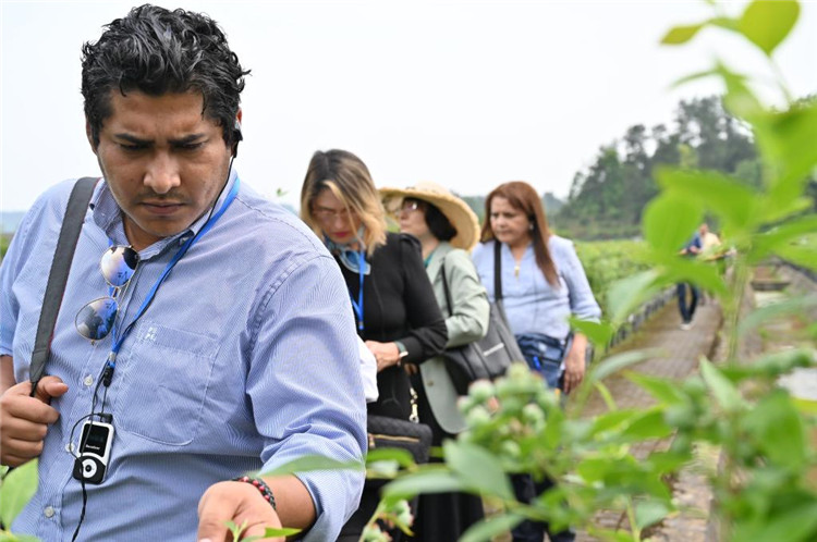 5月2日,洪都拉斯媒體代表團代表團走進(jìn)重慶市南川區(qū)大觀鎮(zhèn)藍(lán)莓產(chǎn)業(yè)示范基地。新華社記者 趙佳樂 攝