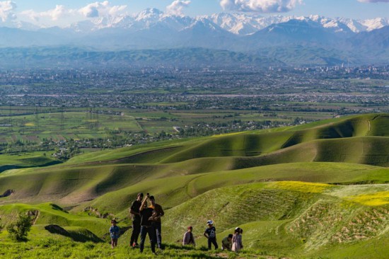 ↑距離塔吉克斯坦首都杜尚別70公里的哈德隆州亞灣區(qū)風(fēng)景。