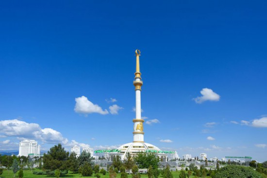 ↑土庫曼斯坦首都阿什哈巴德的獨(dú)立柱。