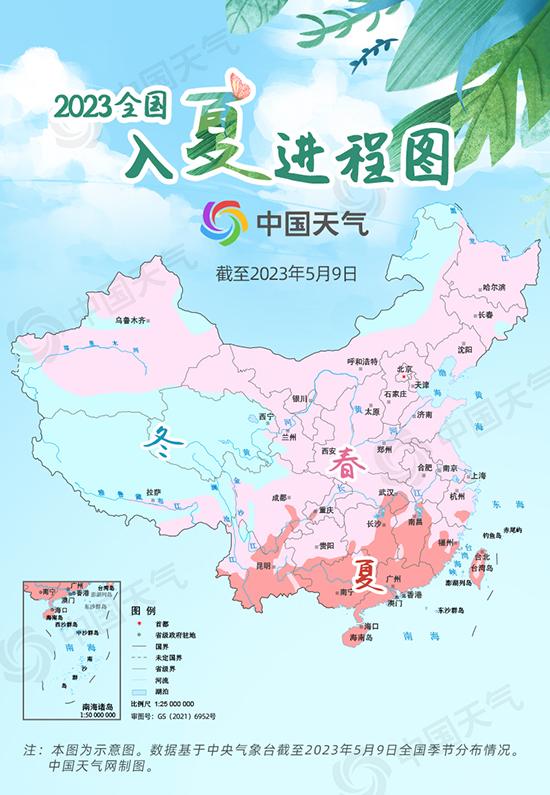 中國(guó)天氣網(wǎng)訊 “從立夏到真夏!”“空調(diào)可以提前清潔下了,準(zhǔn)備開啟了。”中國(guó)天氣網(wǎng)推出2023年全國(guó)入夏進(jìn)程圖,快來(lái)看看真正的夏天到哪兒了。