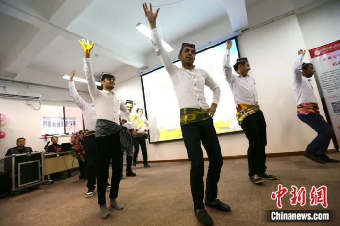 2016年,首屆“絲綢之路文化使者”特訓(xùn)營在西安啟動(dòng)。圖為來自烏茲別克斯坦的留學(xué)生在啟動(dòng)儀式上表演舞蹈。張遠(yuǎn) 攝