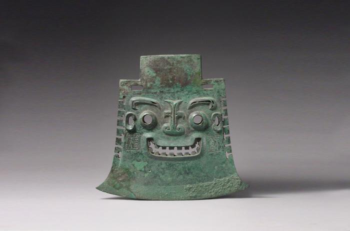 亞醜鉞器身透雕人面紋,人面五官微突出,雙目圓睜,嘴角上揚(yáng),口中露出城墻垛口似的牙齒,因其口部?jī)蓚?cè)對(duì)稱地銘有“亞醜”二字,故得名“亞醜鉞”。乍一看,好像正在微笑。