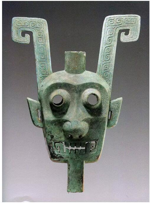 雙面神人青銅頭像看上去呈中空扁體的樣貌,面容透著一股神秘與威嚴(yán)。但不經(jīng)意間望去,表情卻像正在發(fā)呆,“看我空洞的眼神”。
